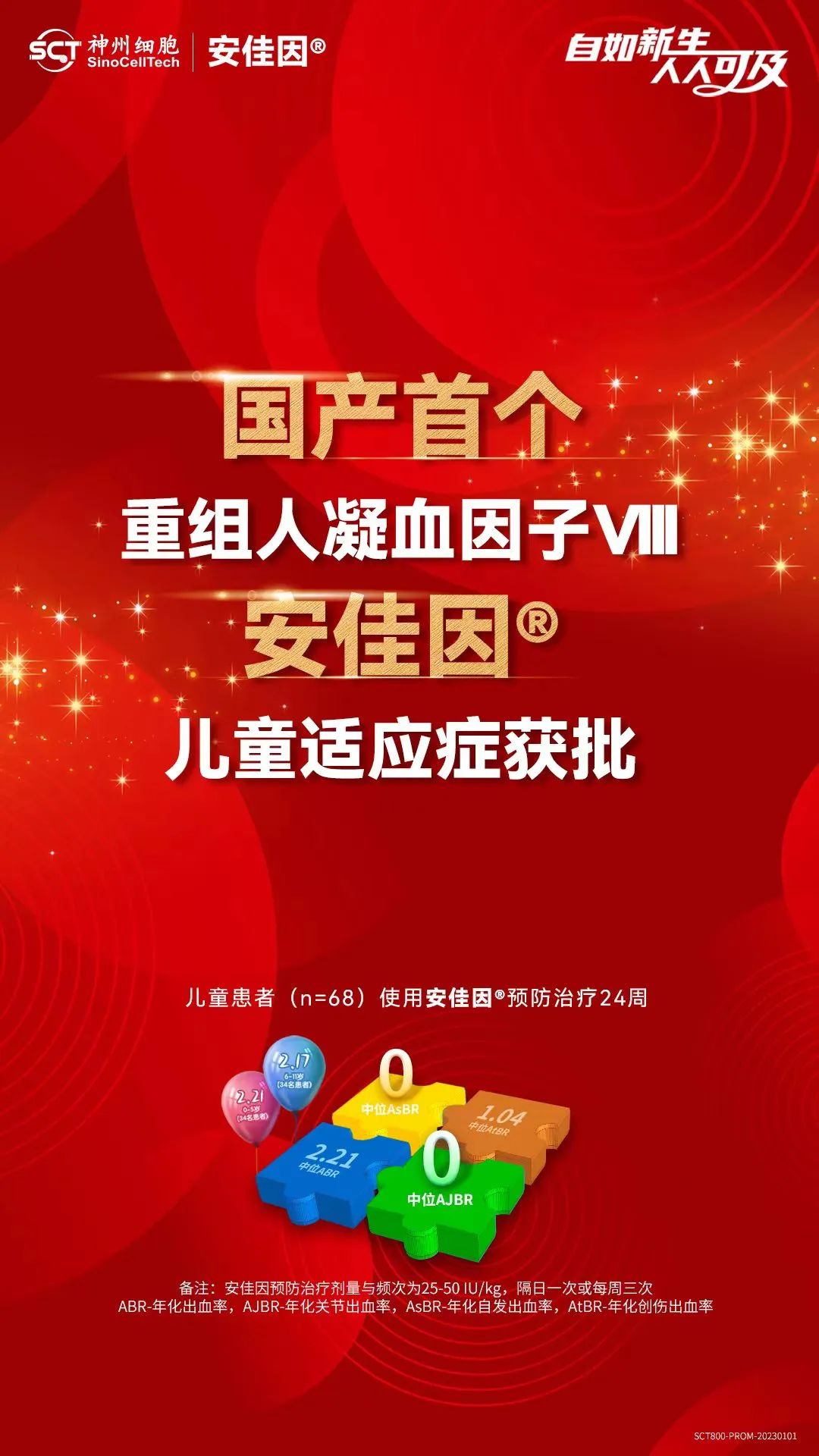 中国有近14万血友病患者,部分患者曾因治疗药物短缺而导致残疾。2021年7月,作为国内首个自主研发的第三代重组人凝血因子Ⅷ(rFⅧ),神州细胞安佳因®的获批上市,填补了国产重组八因子的空白,2023新年伊始,万象更新,安佳因®儿童适应症获批。安佳因®具有工艺先进、疗效显著、安全可靠、产能供应高保障等优势,同时具备完善的患者支持体系,期待已久的安佳因®儿童适应症的到来,将使血友病A儿童患者的治疗显著获益,为儿童患者的健康快乐成长增添一份保障。